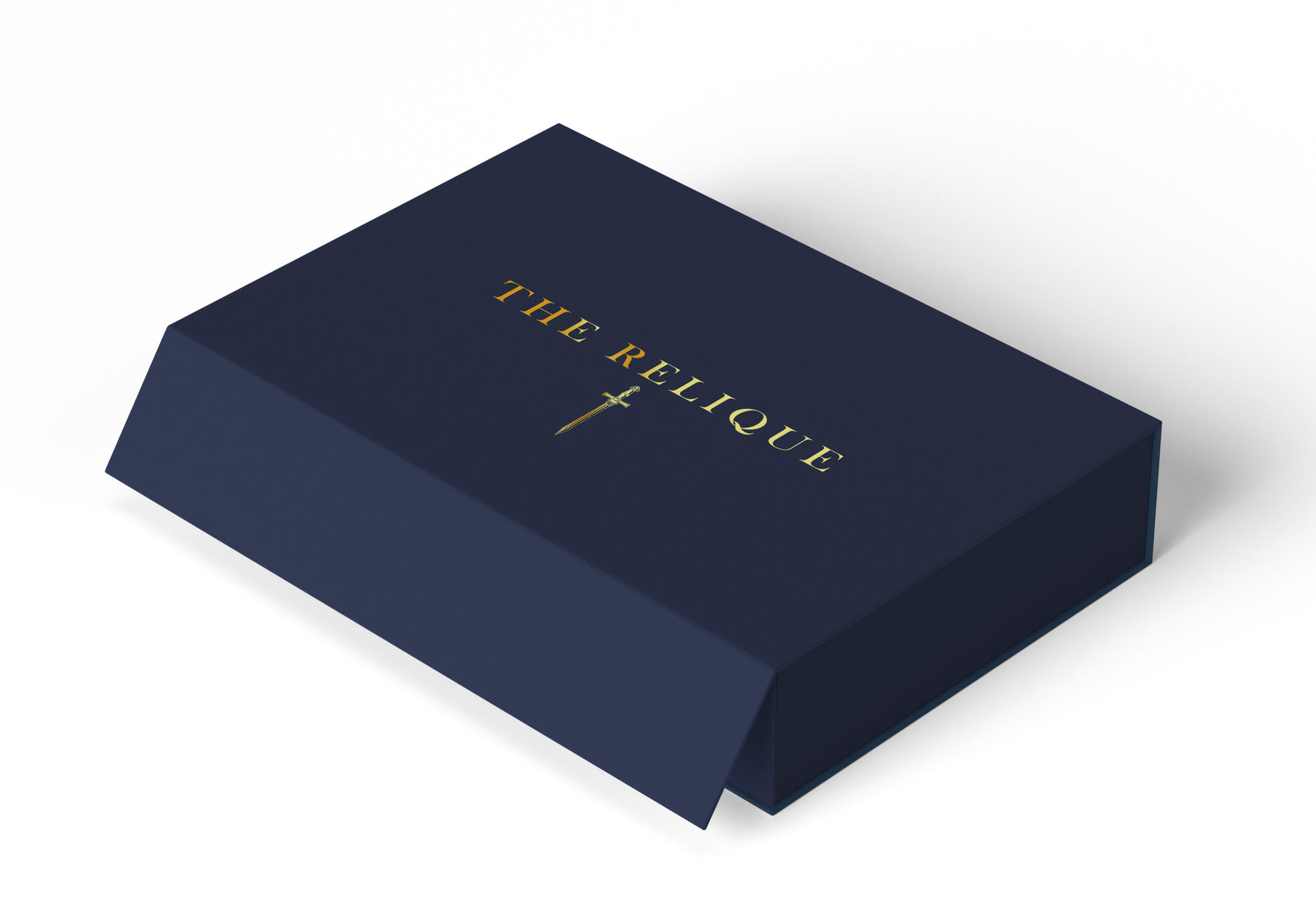 - Rigid navy keepsake box, gold foil